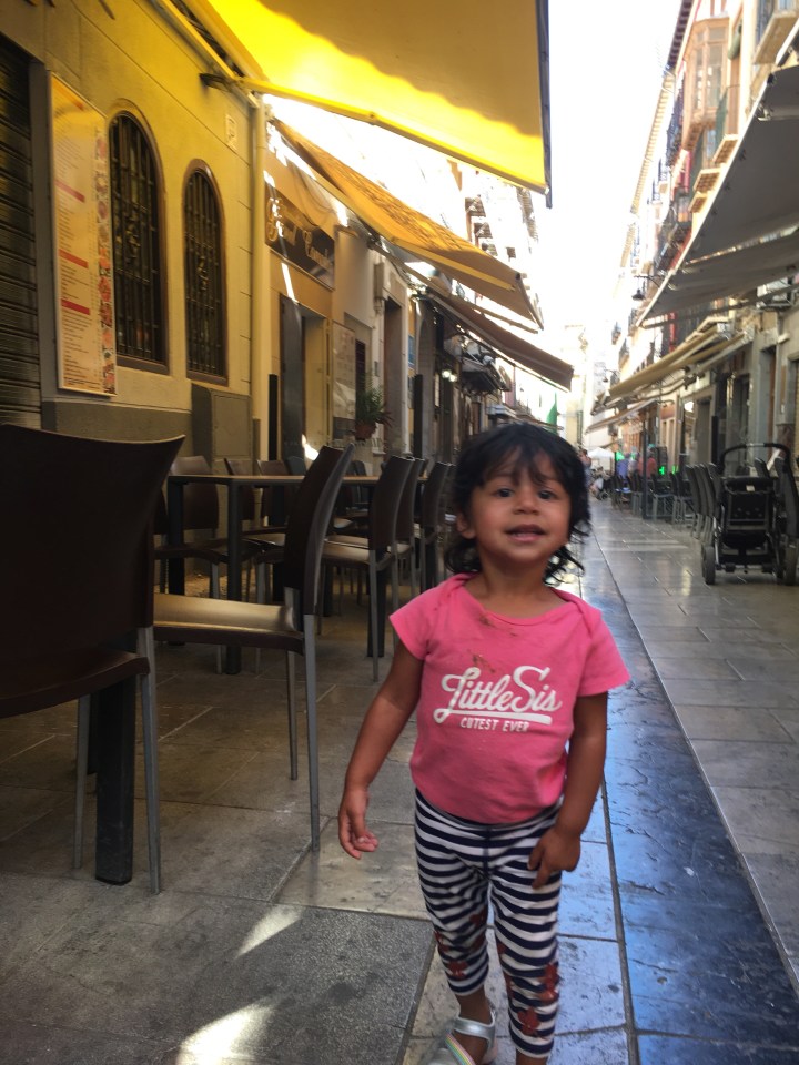 We were starving so we strolled into one of the neighborhood tapas bars that is a speciality here, and to further satiate our appetite ate some chicken shawarma that melted in our mouths. I absolutely love Islamic towns and this quickly became one of my favorites I’ve been too. Since we were tired we decided to just walk into the Cathedral next door. It was a stunning piece of architecture with tombs of the monarch from the time the Catholics won over Granada and Spain from the Moorish. We then strolled through the Alcaiceria or local historical market to another tapas bar. Ariana skipped her nap today so we decided to head back to our room where the kids did “horse-yyy” on daddy’s back before nighttime. Today Anjali put the kids to sleep, while I had the chance to grab some hookah and tea in the Islamic area at a square with a local musician. I was so fascinated that I decided to start strolling around and climbing my way up the cobblestone steps through local Islamic stores, tapas bars and hookah bars. Before I knew it I was atop the hill at Mirador de San Nicolas overlooking the grand Alhambra at sunset. There were musicians at every corner of my climb and of course at the square with the view. I decided to have a glass of vino tinto overlooking the Alhambra digesting it’s beauty against the snow mountains and the town. I was completely charmed already, only to return to the hotel to find live music in the courtyard that required me to get some dessert and a night cap. I am in love with this town and it was truly unexpected!
