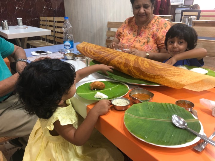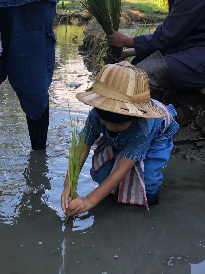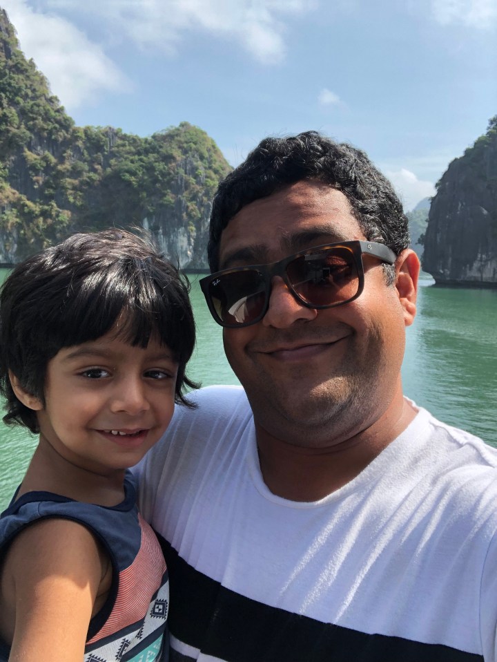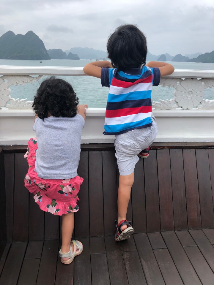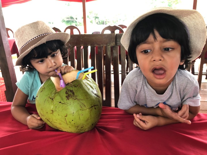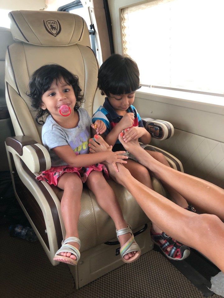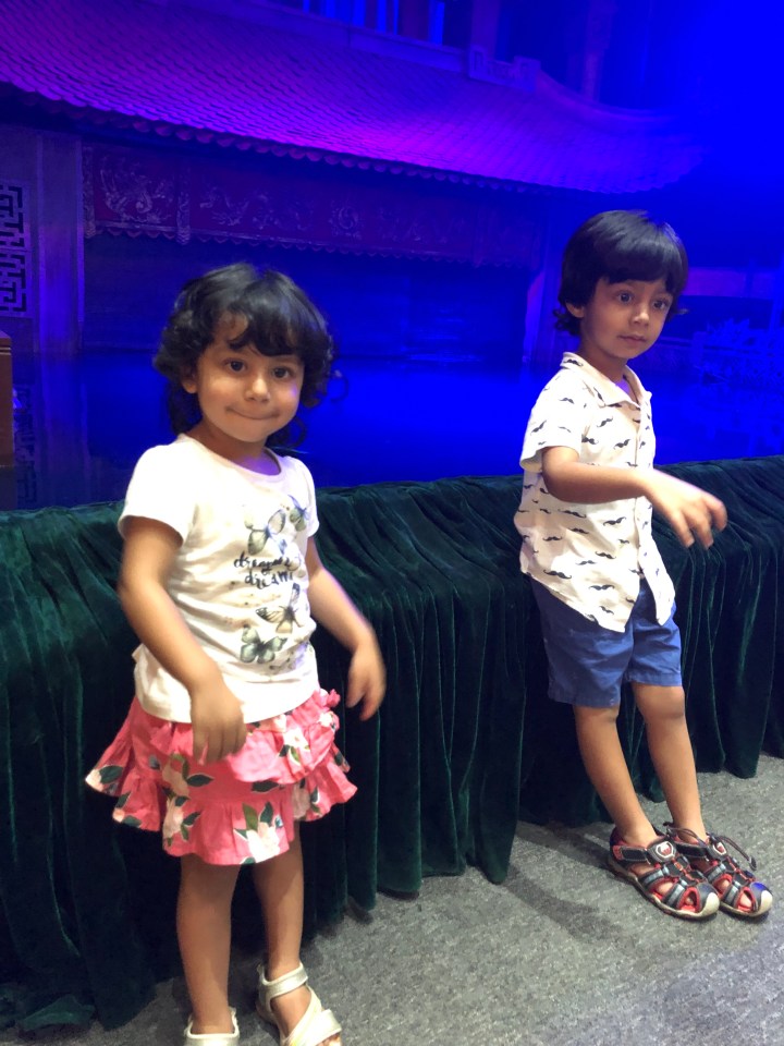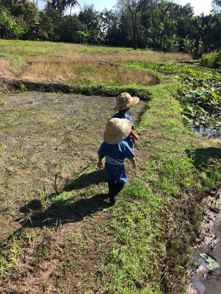 We were excited when we awoke the next morning since we were checking in to the luxurious Dhara Dhevi hotel in Chiang Mai. We took a ‘Grab’ (equivalent of uber in Asia) and were greeted by stunning grounds as we approached the hotel. The main lobby as well as most of the villas looked like temples with golden tops, and the grounds were lush and green. We spent a relaxing couple of days here, alternating between the resort pools, the kids club and the various restaurants. Ayaan enjoyed the buggies that would transport us within the resort as well as the local arts and crafts center where he made fish and frogs out of colored bamboos. The highlight of our stay was our family dressing up as local farmers and planting rice with the water buffalos while being serenaded with live music. The kids even played in their own little ‘orchestra’. Gaurav and I did manage to get a date night in at a nice, Italian restaurant while we left the kids with a caring sitter from the resort. We really enjoyed dining as a family in our outdoor living room on the last night as well. On the last day, a horse carriage took us around the resort before we left for our flight to Phuket.