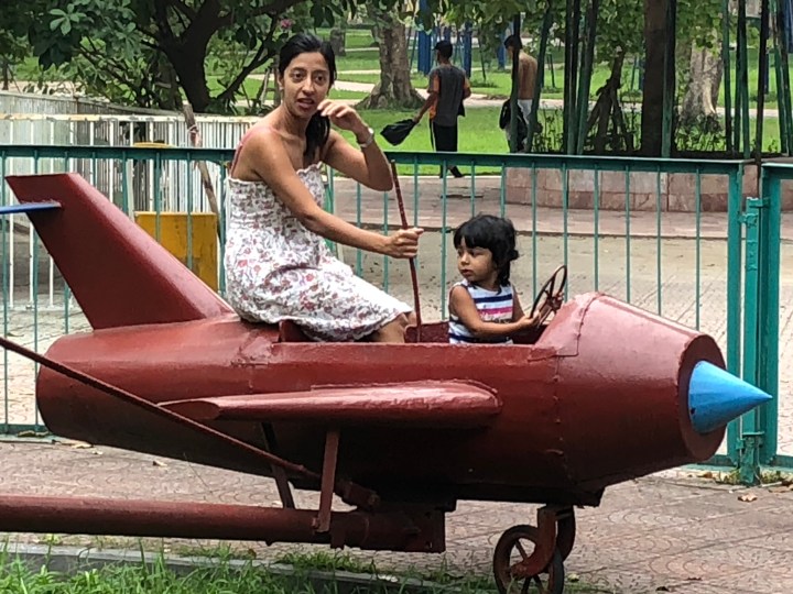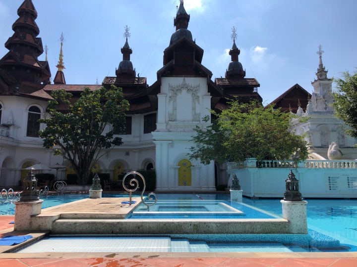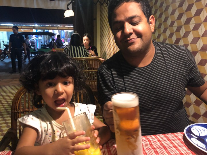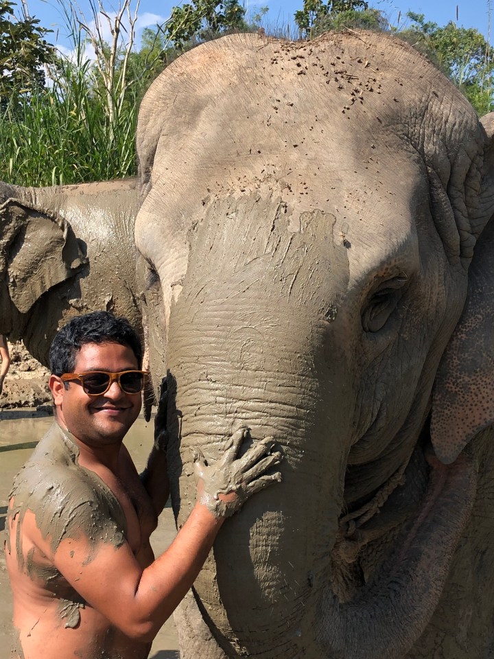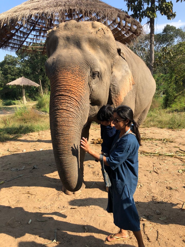 We visited the Mae Rim elephant sanctuary the next morning. Upon arriving, they had us feed the elephants several bananas to befriend them. We then walked with them to a large mud pool where we learned more about this magnificent creatures and how they were rescued from cruel camps or circuses to be cared for at Mae Rim. Next we set off to play in the mud pools with them which Gaurav and Ariana enjoyed thoroughly. Ayaan and I enjoyed the next water pool where we splashed the mud off their backs to clean them. As we retreated back, we played in the ‘human’ pool and then learned to make noodle soup which we devoured for lunch. The kids napped on the way back to our hotel. We took the kids to the nearby Maya Lifestyle mall that evening and they loved playing in the kids play area there. We’d called for a babysitter from the hotel that evening since Gaurav and I were hoping to spend some time with each other. The babysitter though didn’t speak any English and seemed way in over her head with both kids so we decided it was best not to leave the kids in her care. We strollered down to the Nimmam district for a quick dinner at Nimman Social before heading back for a nightcap in the balcony while the kids slept.