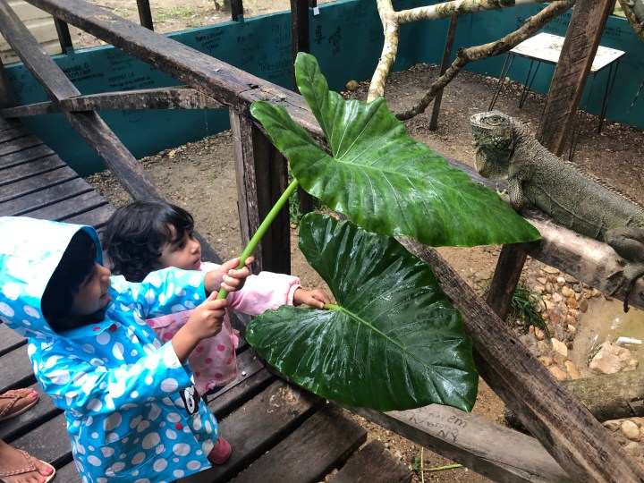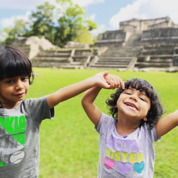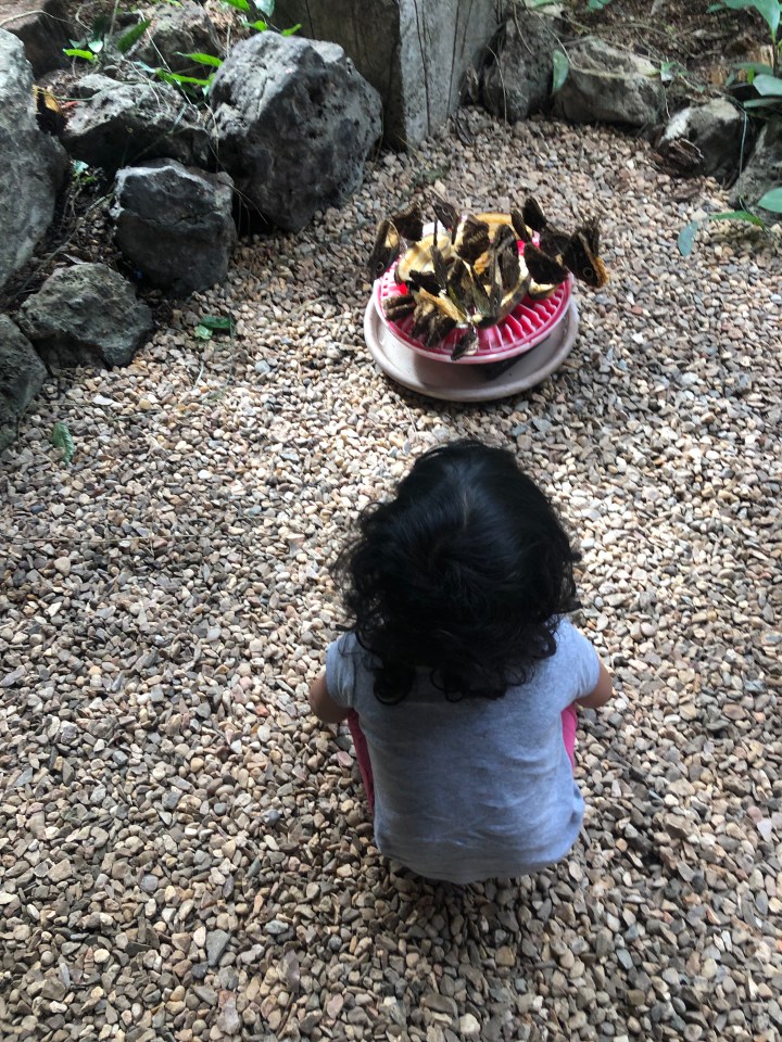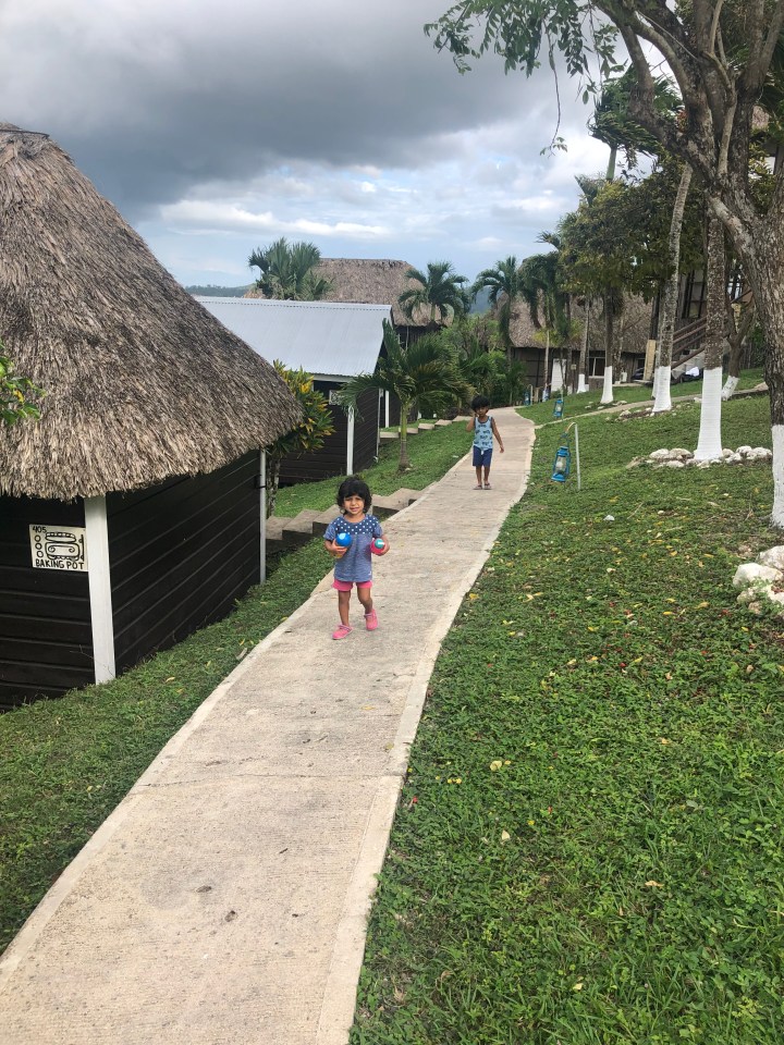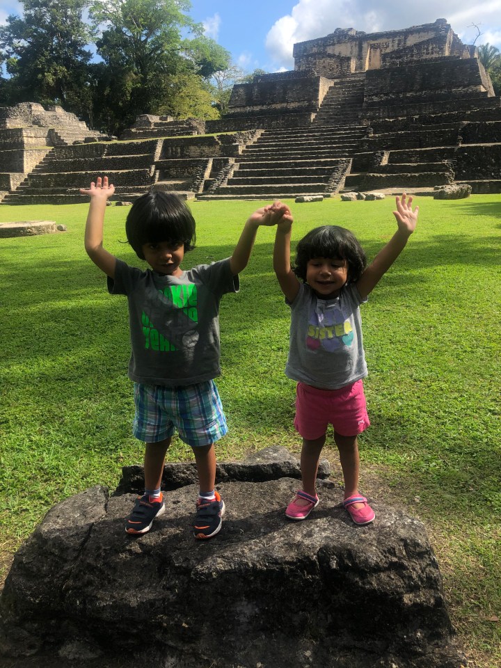 I forgot to mention in part 1, Belize is Anjali’s 50th country and Ariana’s 25th!!! The drive to the Camino Real hotel in Guatemala was just 1.5 hours and the immigration out of Belize and into Guatemala was annoying (since you had to do paperwork twice 100m from each other) but generally seamless. We had gotten papers for the car at the time of rental which made things easy. We arrived at our resort just in time for lunch, and were delighted to see the beautiful green-blue lake adjoining the resort. After some local Guatemalan shrimp and rice, we all jumped into the pool and hot tub. We also took a stroll to the Peten lake waterfront where the water was crystal clear and warm. The sunset was absolutely stunning over the lake. The kids were tired and had a late nap, and we had an overall relaxing evening ending with some time for me to read a book and drink some wine on the balcony.