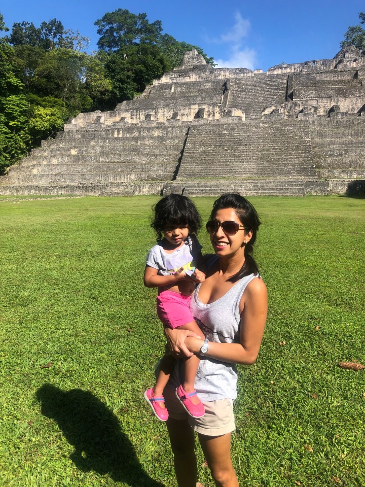 Next morning we headed out to Tikal, the world famous 2000 year old Mayan ruins and the primary purpose of our trip to Guatemala. A quick 45 mins drive north from the resort, we arrived at the entrance of Tikal. It’s a massive area in the middle of the rainforest scattered with Mayan temples, and it reminded us a lot of our recent experience at the magnificent Angkor Wat. We walked what felt like a really long time through the forest to the first pyramid and ruins. A few 100m later, we reached the Gran Plaza – a breathtaking site with the most famous ruins and temples on each side. On one side stood the super famous Temple I or the Jaguar temple. Opposite stood Temple II that Ayaan and I climbed to get an amazing view of the on plaza. And the north and central Acropolis on the other sides, that all of us enjoyed climbing and exploring. Tikal is not super kid friendly with its climbs and long walks, but it worked out well for us since we didn’t have FOMO to see every single temple. Also luckily we got a ride back to the entrance. Tikal was a great experience, much like visiting Angkor Wat or Petra, though not as magical.