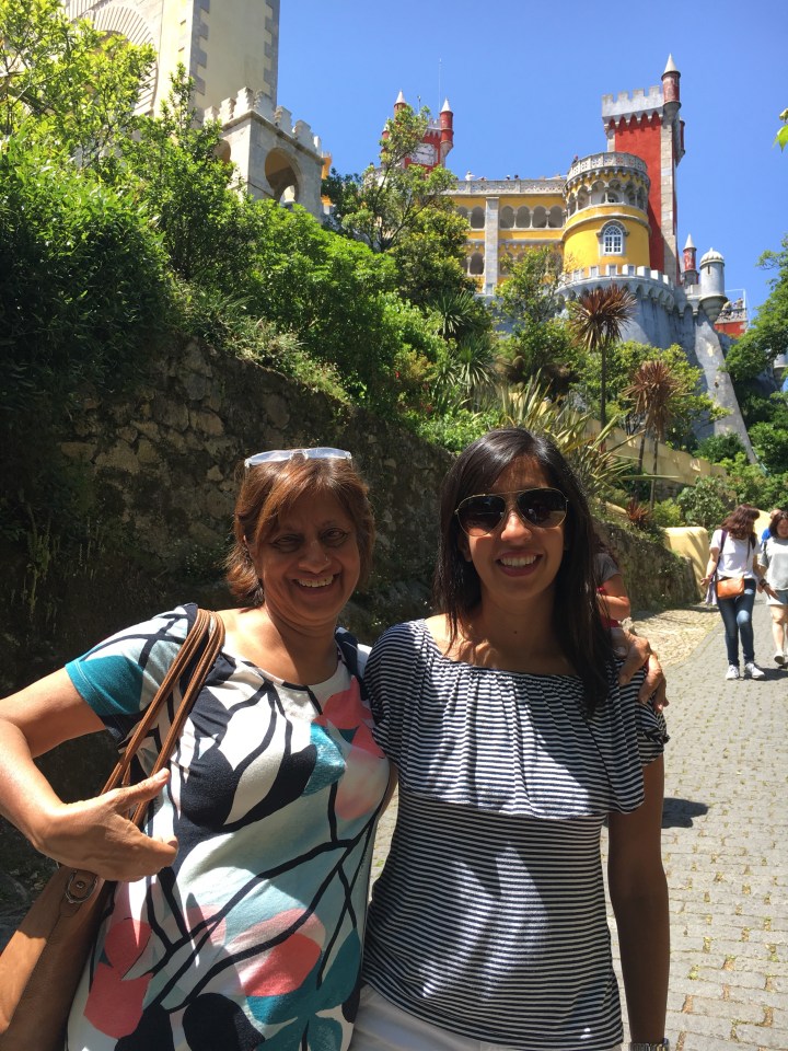 Our second day in Lisbon got a late start as I finally had a good night’s sleep – is it possible that the kids are finally over their jet lag??!? Today we are going to the historic town of Sintra with its palaces and castles. We decided not to take the car and park it in a garage for the next 3 nights. We figured it’ll be easier with the 9 of us to take the train together and Ayaan would love it! Luckily the train station was just a minute walk from our apartment and round trip train tickets were just 5 euros each. The day started out with a slight drizzle which actually was a welcome respite from the heat (that we’re still getting accustomed to).
