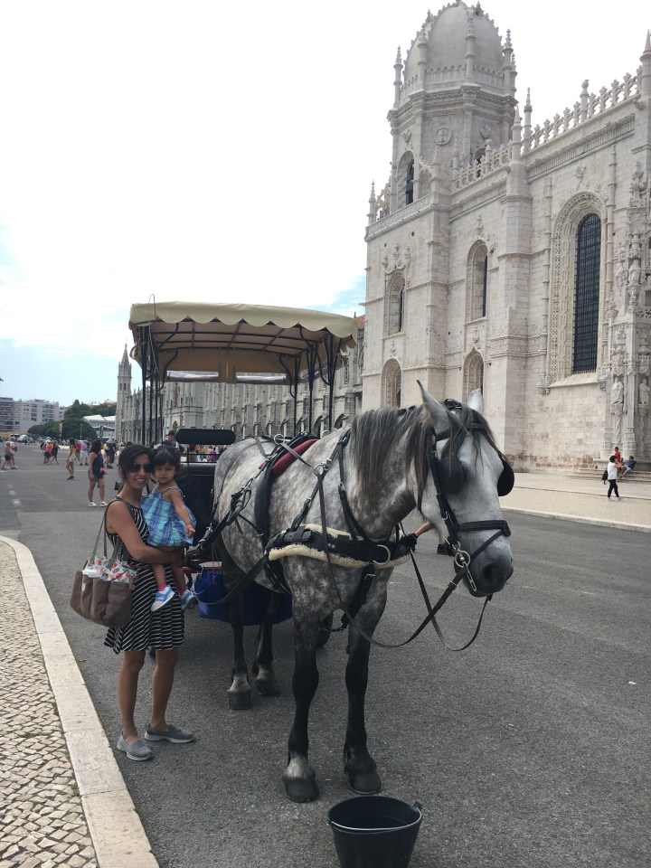 Our next stop was across town to Belem where we strolled along the board walk near the Belem Tower. We then proceeded to the Jeronimos monastery which boasted a beautiful church and an even more stunning courtyard surrounded by ornate carvings. Ariana enjoyed petting the horse outside. We strolled to a nearby cafe with live music to enjoy a bottle of rose and dinner for the kids. Gaurav bought some delicious egg tarts and malasadas for the family from Pasties de Belem – Ayaan couldn’t have been happier with that end to his day!