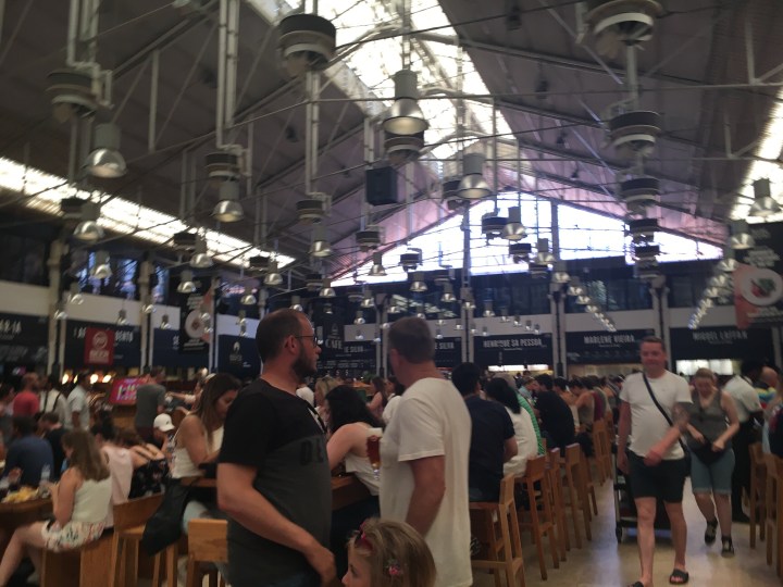 We got a late start the next morning and decided to wander the neighborhoods of Lisbon. We started with Alfamha whose narrow quaint streets beckoned us to wander aimlessly to enjoy its true beauty. We then headed to the Mercado de Ribiera and took in the stalls lined fresh produce and meats. We then found ourselves in a huge hall lined with multiple restaurants and bars where we enjoyed a delicious lunch of roast pork and scallops. While we wanted to explore Chiado next, we forgot to bring Ariana’s pacifier which led to a huge toddler meltdown, forcing us to take the first cab back to our Airbnb. Lisbon’s vibe reminded us of San Francisco and Rio and the red “Golden Gate” like bridge and the Christ replica explained why.