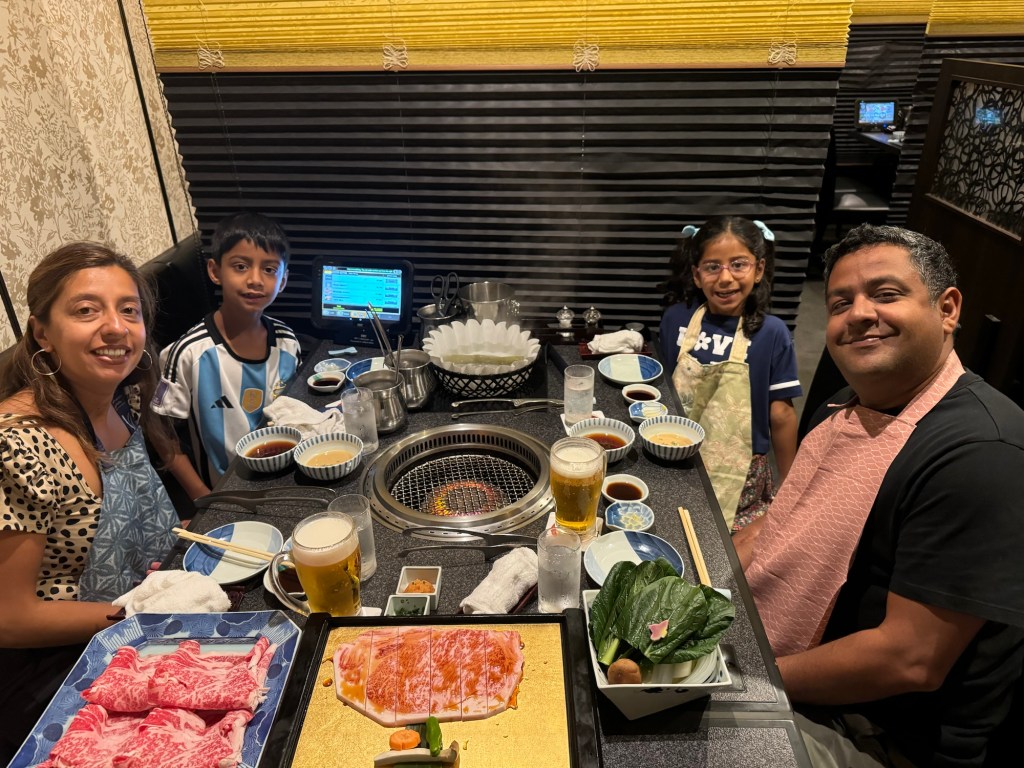 The highlight of our stay was a sunset sail cruise Anjali had reserved out of Cabo. It was a 12 person sail where we sipped cocktails, ate hor d’ourves, and got lucky to watch 2 whales for about 20 mins against the sunset setting. It was a magical family experience that we’ll remember forever. We topped it up by eating chocolate and caramel stuff churros, and walking along the waterfront. On a couple of other days, we drove to the main square in the town of San Jose del Cabo, which we found very charming. We ate more tacos and churros the first night, and on our final night ended with my 45th birthday celebration at the Don Sanchez restaurant, with an amazing singer who happened to sing all our favorite songs all night.