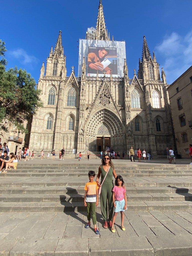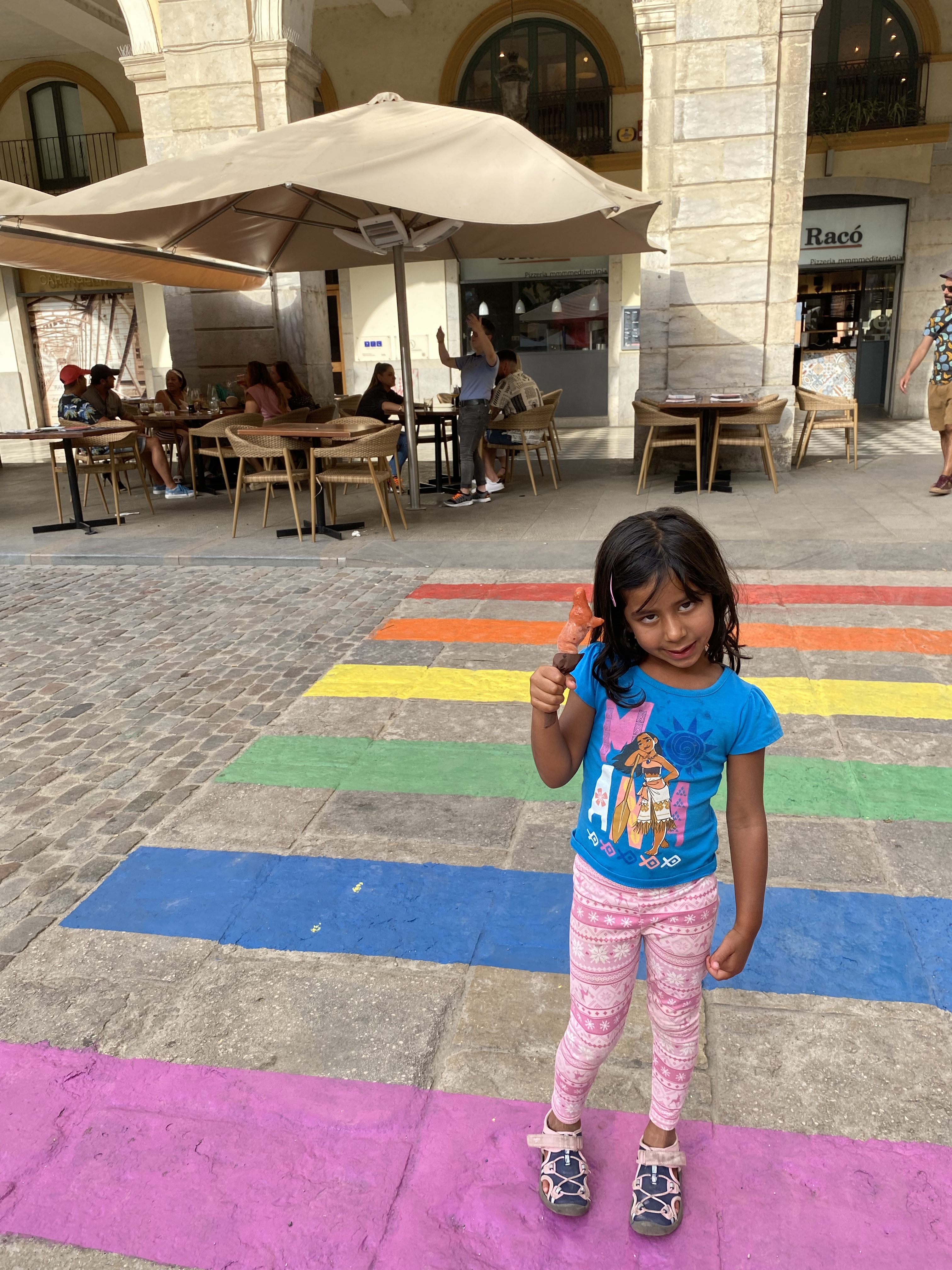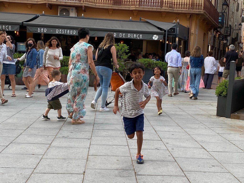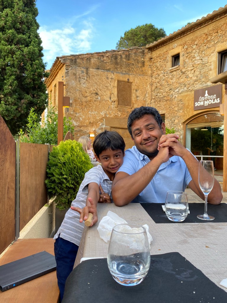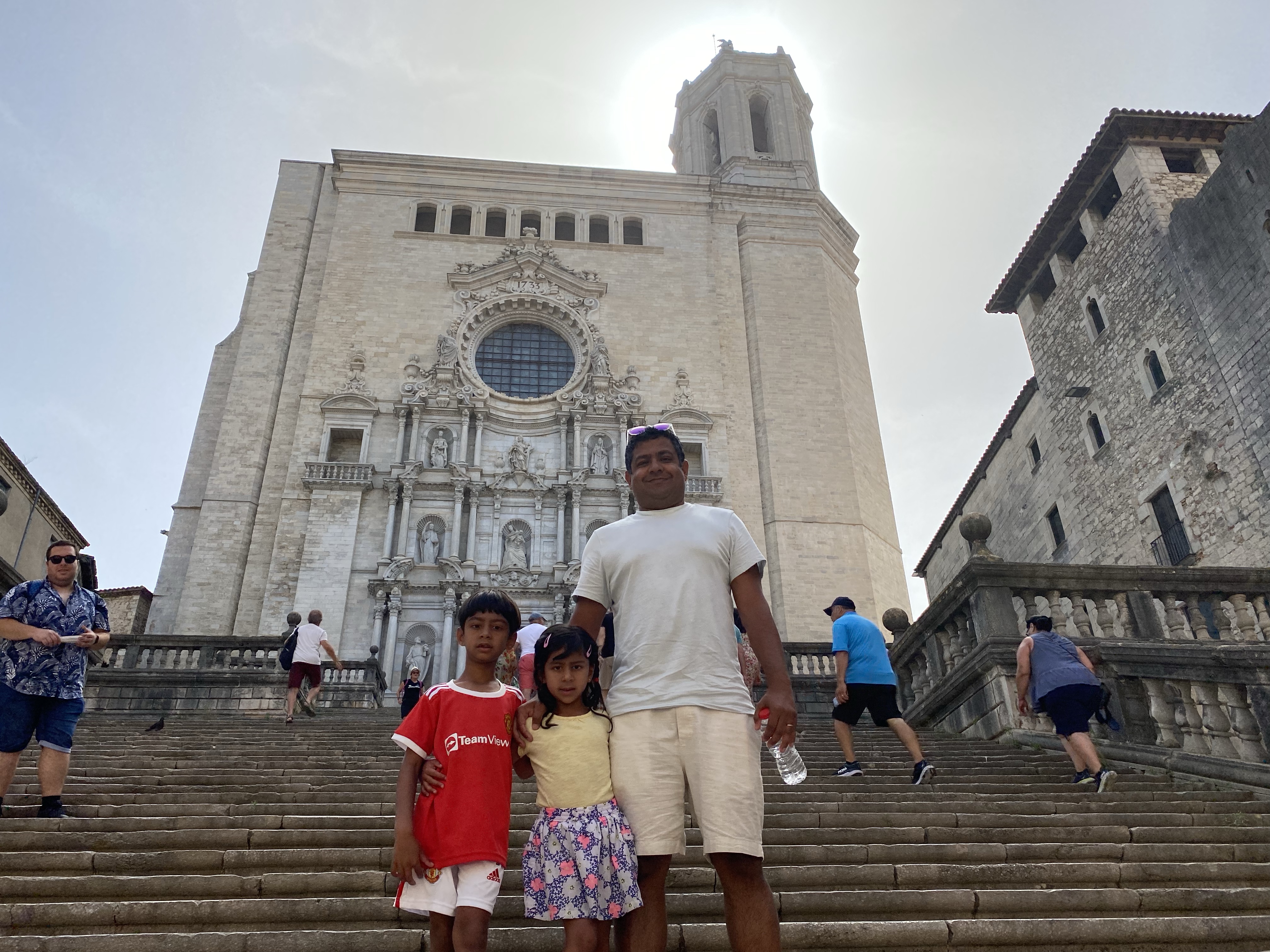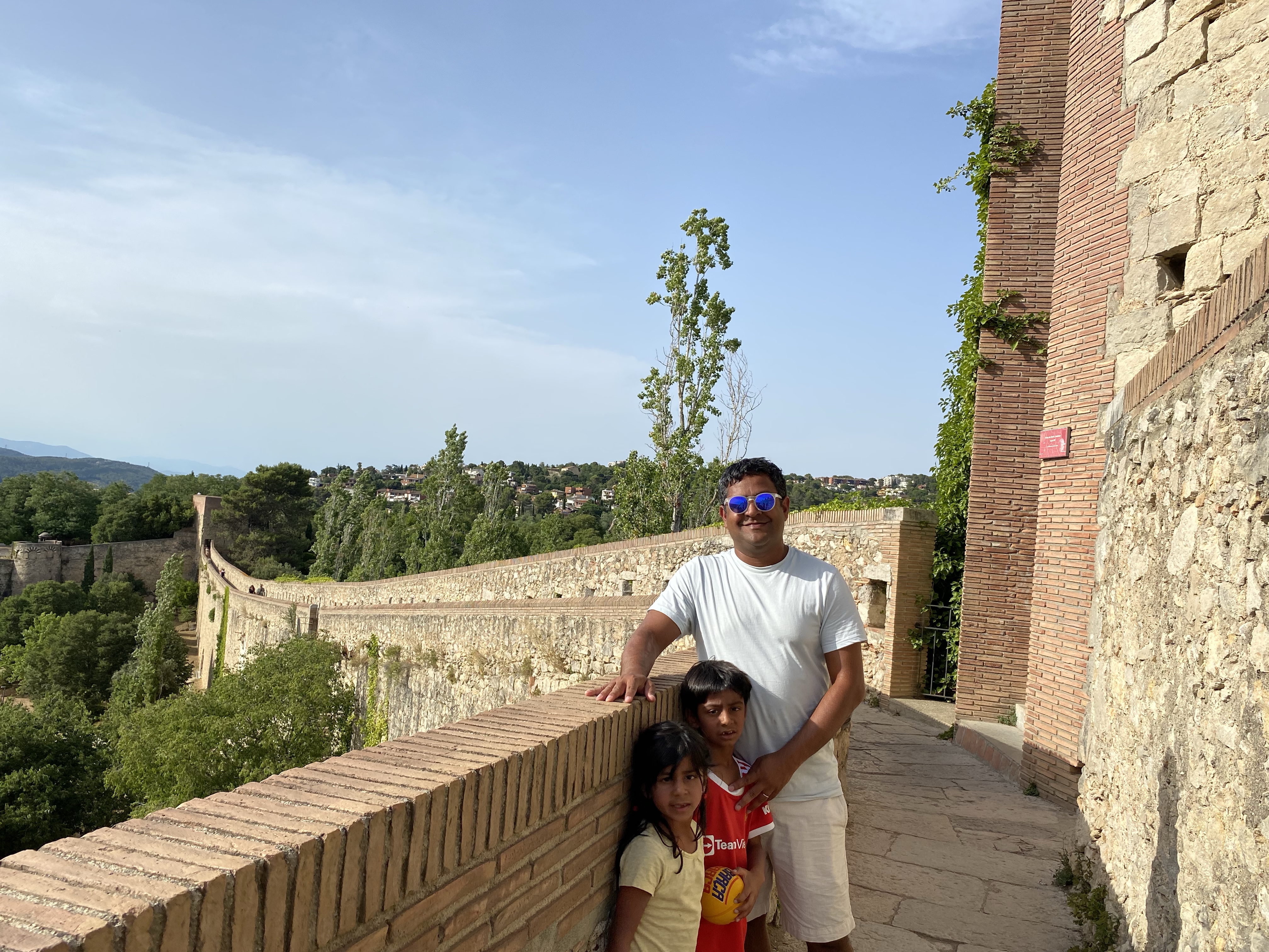 On our last day in Girona, we strolled to the magnificent cathedral, the Arab baths, the walls of the old town, the Basilica de Sant Feliu and marveled at the charming beauty of Girona. We then decided to take our apartment host’s recommendation for lunch at a Basque Country restaurant, and enjoyed some delicious pinxtos, steak and garlic prawns, followed by 7 (pinxto) desserts! After lunch, we took turns getting Aromatherapy massages, while the other parent relaxed in the apartment with the kids. In the evening, we revelled at getting lost around the old town walls and cobblestoned streets (Ayaan in his soccer Manchester United soccer jersey bouncing around his new soccer ball). After dinner comprising pepperoni pizza and brut rose, Ayaan and Ariana helped me dry our clean laundry, and we then settled in for an early night, to prepare for our flight the next morning to Mallorca. Looking forward to seeing Nani, Dhara Masi and Kunal Uncle!