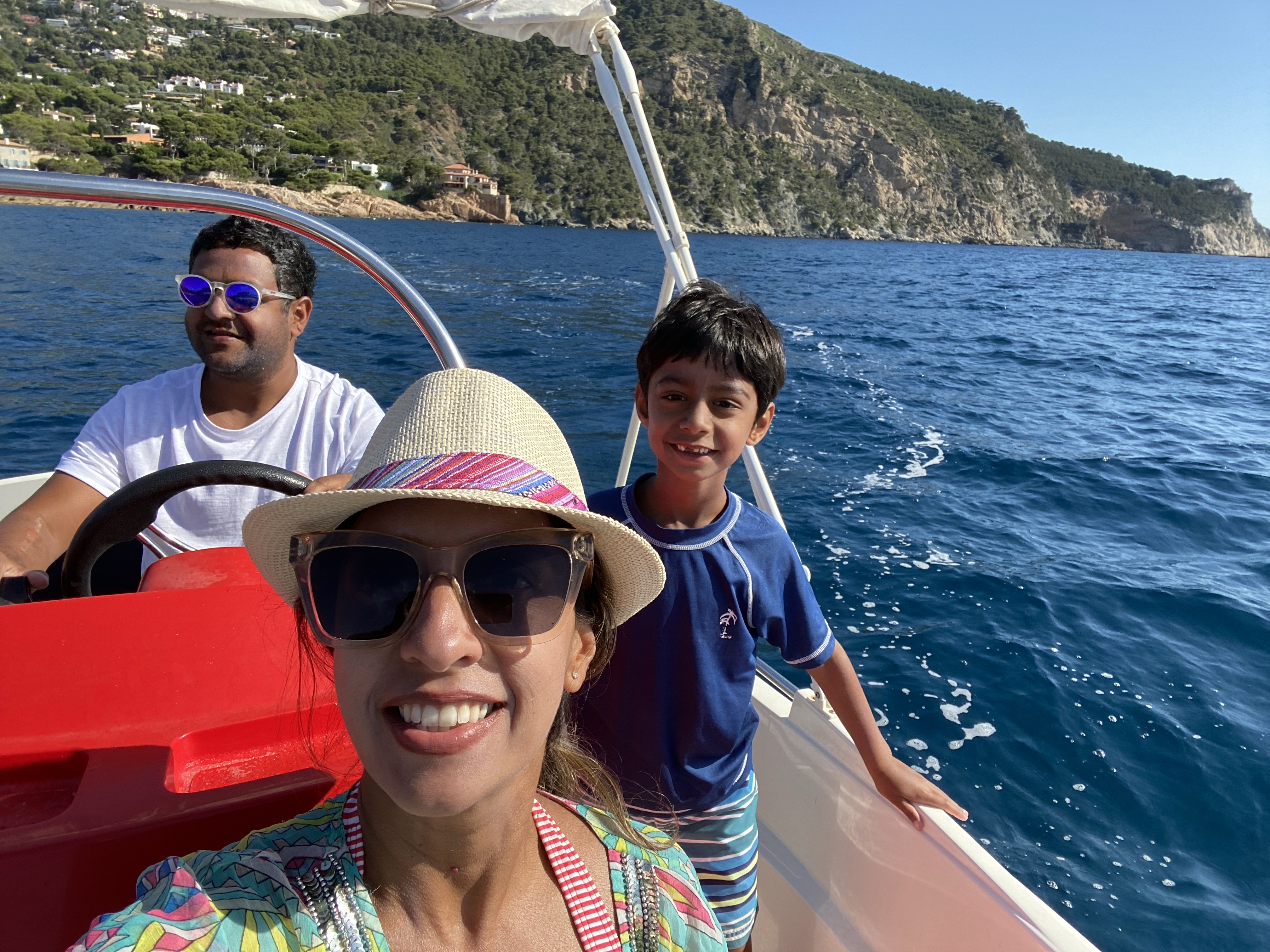 On our last day on the coast, with some coaxing from Ayaan, we decided to rent a boat, and as we’ve become accustomed to realize, it was the best day ever! Ariana and I lazed on the deck while Gaurav and Ayaan navigated, and we stopped in beautiful coves and beaches along the way. A bottle of champagne later, Ariana, Ayaan and I were dancing to Abba while the boat meandered along the calm waters. We all had a blast, and eventually returned the boat that afternoon to make our drive down to Girona. We had a beautiful apartment right in the middle of old town, allowing us to wander through the charming cobblestoned streets. We enjoyed some unique flavors of ice cream at Rocambolesc, and spent the rest of the evening people watching in the Placa d’Independencia while the kids played hide and go seek.