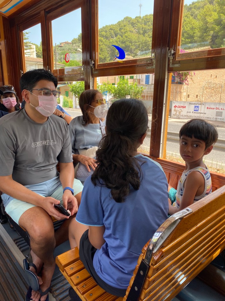 The next day we joined the rest of the crew on a trip to the port and town of Soller, at the northwest of the island, about an hour away from us. 13 of us ranging from 5 to 75 took a San Francisco like tram from the port to the main town of Soller. As always, we visited the cathedral and hung out at a tapas restaurant in the square sipping Sangrias. The siesta after the tram ride back to the port was in the stunning beach and calm waters in the U-shaped cove. We played ball and the kids made a sand castle. It reminded me of the city beach at San Sebastián. The day ended once again at the beachfront home with the family.