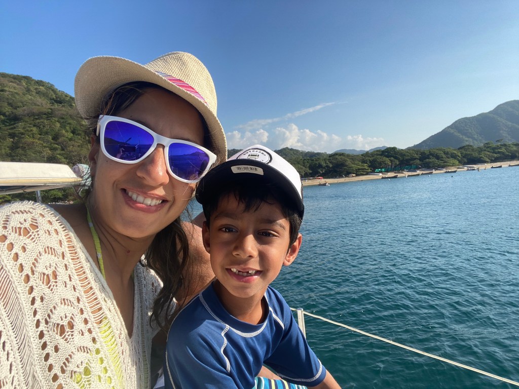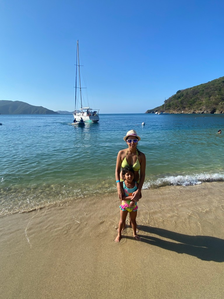 After a wonderful few days in the Medellín area, we were ready for some beach time. We arrived in Santa Marta in the afternoon where it was 87 degrees humid and hot. We stayed in centro which gave us easy access to the malecon, the square, marina and to many restaurants. Our first afternoon was spent at an ocean front restaurant for lunch followed by a short drive to the nearby Rodadero beach with a beautiful sunset and the hundreds of hawkers. The kids played soccer and made a sand castle at the beach past sunset, before we headed to the square to get some local food in the square listening to live music. The next morning we took a tour on a sailboat to a secluded beach in Tayrona national park. We enjoyed the 1.5 hour ride to the beach that was choppy with beautiful views of Santa Marta, the coast and the park. Our afternoon was spent chilling on the beach, snorkeling and eating a grilled whole fish. We walked around Santa Marta that evening and ate dinner at a spot called Ouza which had delicious Mediterranean food. Colombia is an interesting mix of South American, Caribbean and Centra American culture and food.