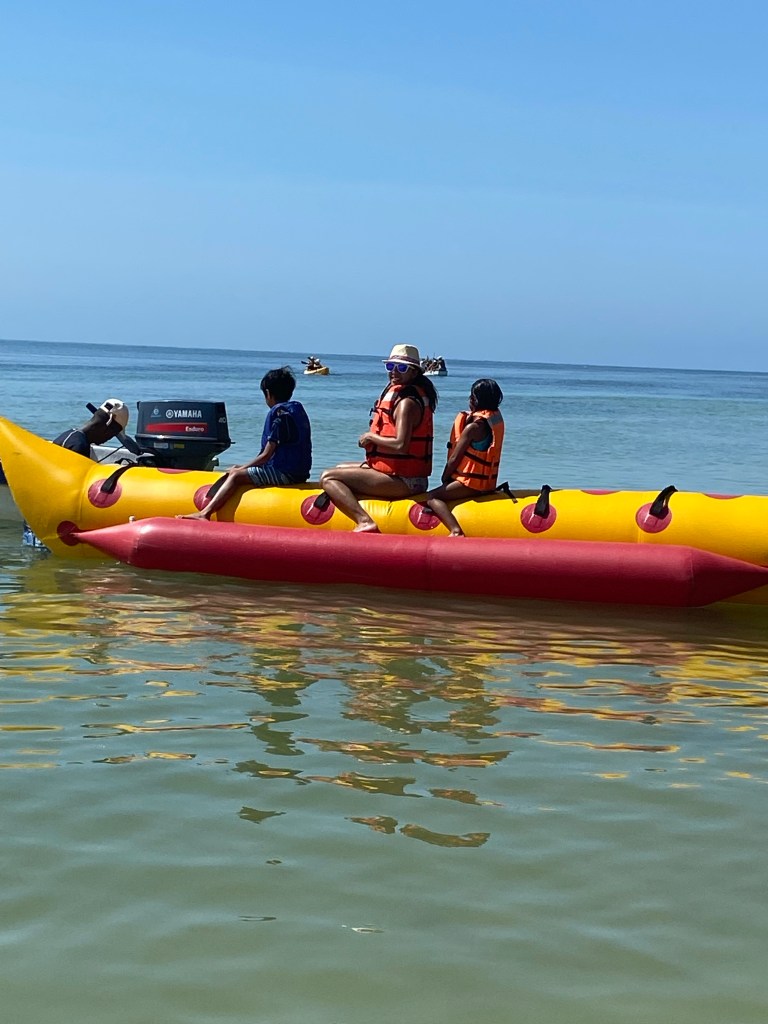 We drove to Cartegena next morning for 4 hours to catch our boat for the next leg of our journey. Google Maps detoured us again which reminded me why it’s better to trust the locals than technology in countries such as Colombia. Nonetheless the drive was beautiful and we reached just in time to catch our boat to the amazing Isla del Encanto hotel in Isla Baru. We’ve been dreaming of our hotel stay in Belize from our sabbatical, and Encanto was that and much more. The entire experience was a little like the show White Lotus with no twists. A small 34 room property that can only be accessed by boat with 2 salt water pools (one with a pool bar), all inclusive local meals and a really calm beach. We spent our time here kayaking, lounging and eating some great food. They had pony rides on the beach at the hotel too! Ariana, Ayaan and I also learned how to stand-up paddle board (Anjali being the pro). For Christmas Eve, they had a celebratory dinner with live music and an elaborate buffet, which made the night memorable. We really loved our stay at Encanto which felt really intimate, and ended with a private boat transfer directly to our next hotel at Playa Blanca also on Isla Baru.
