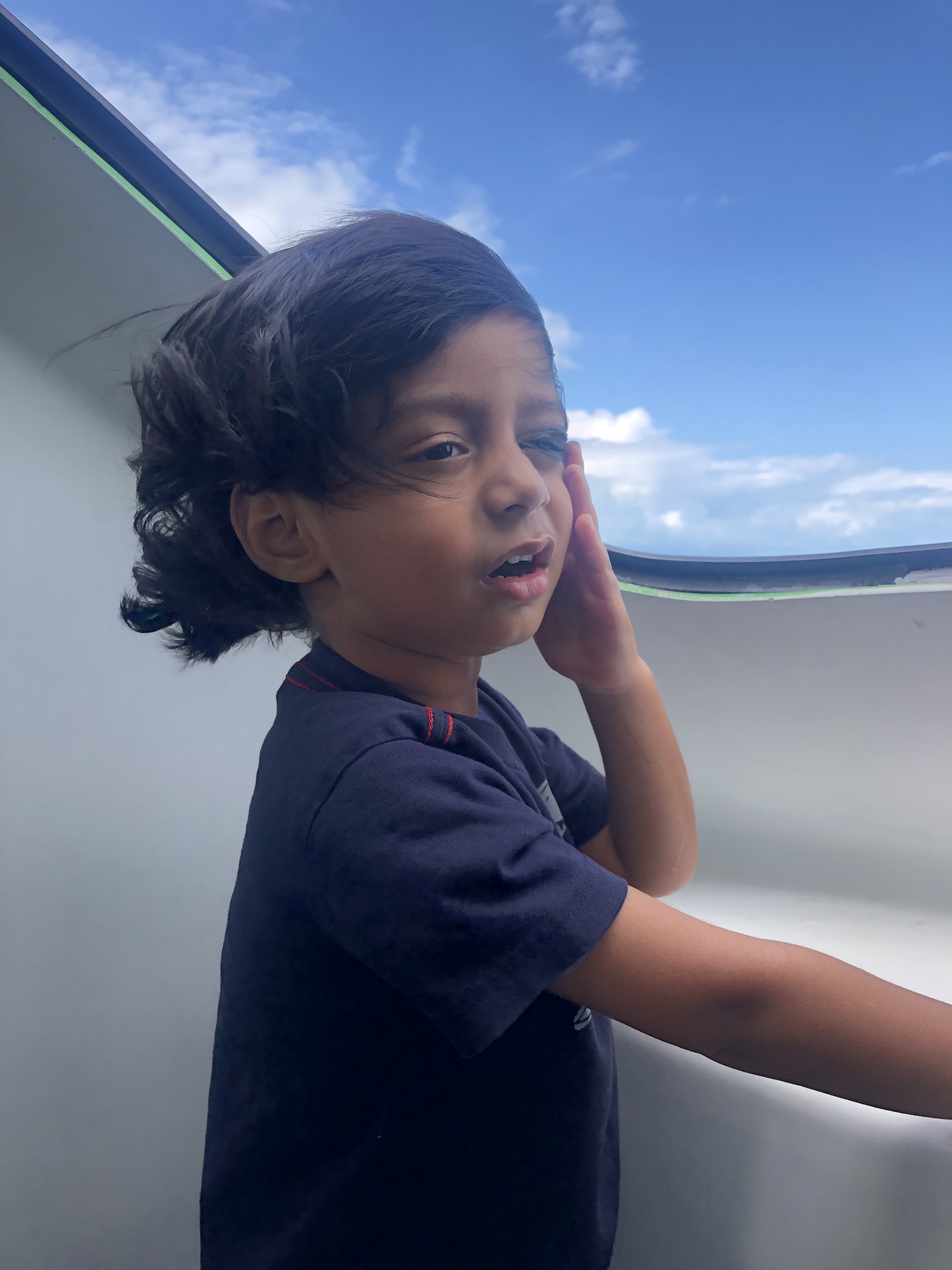 The next morning, we drove to Volcán Osorne and took the chairlift up to the first level. From there, the beauty of the mountains and the snow beckoned and we began a spontaneous climb towards the glaciers. After some time, Ariana and Gaurav retreated back down to view the crater while Ayaan and I continued the climb toward the peak. The incline was steep but we were rewarded with stunning views of the mountain up close and cheered on by the people on the chair lift. When we rested on the black volcanic rock, it actually felt warm, contrasted by the snow which we let melt in our mouth because we hadn’t carried any water. We ultimately retreated back down and Ayaan was very upset to have left his favorite warthog stuffie up on the mountain during one of our breaks.